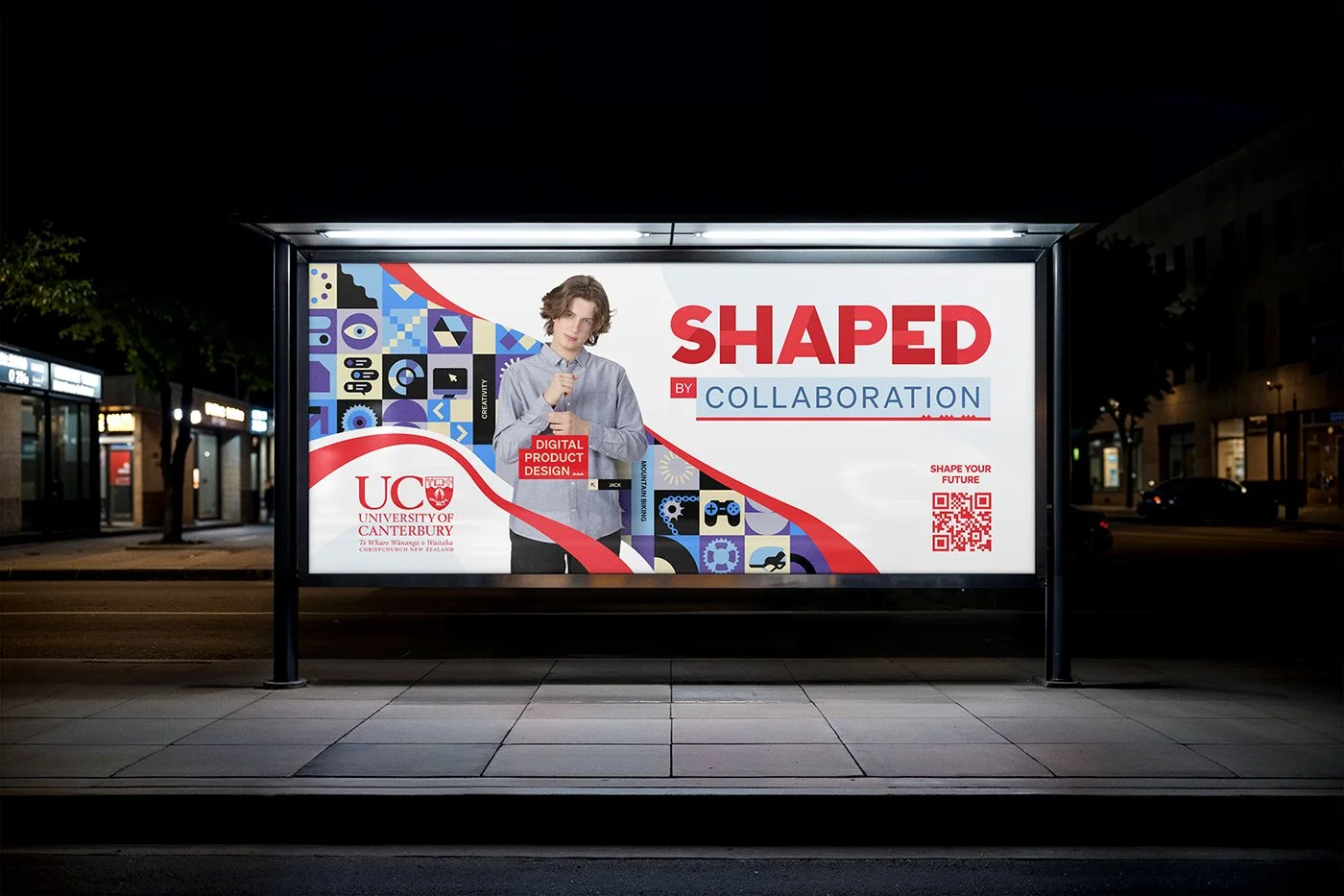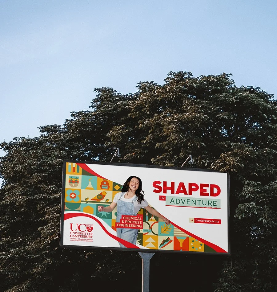 The “Shaped By” campaign for the University of Canterbury highlights the idea that every student is shaped by different experiences—such as family, culture, adventure and opportunity—and that their time at university helps shape who they become next.